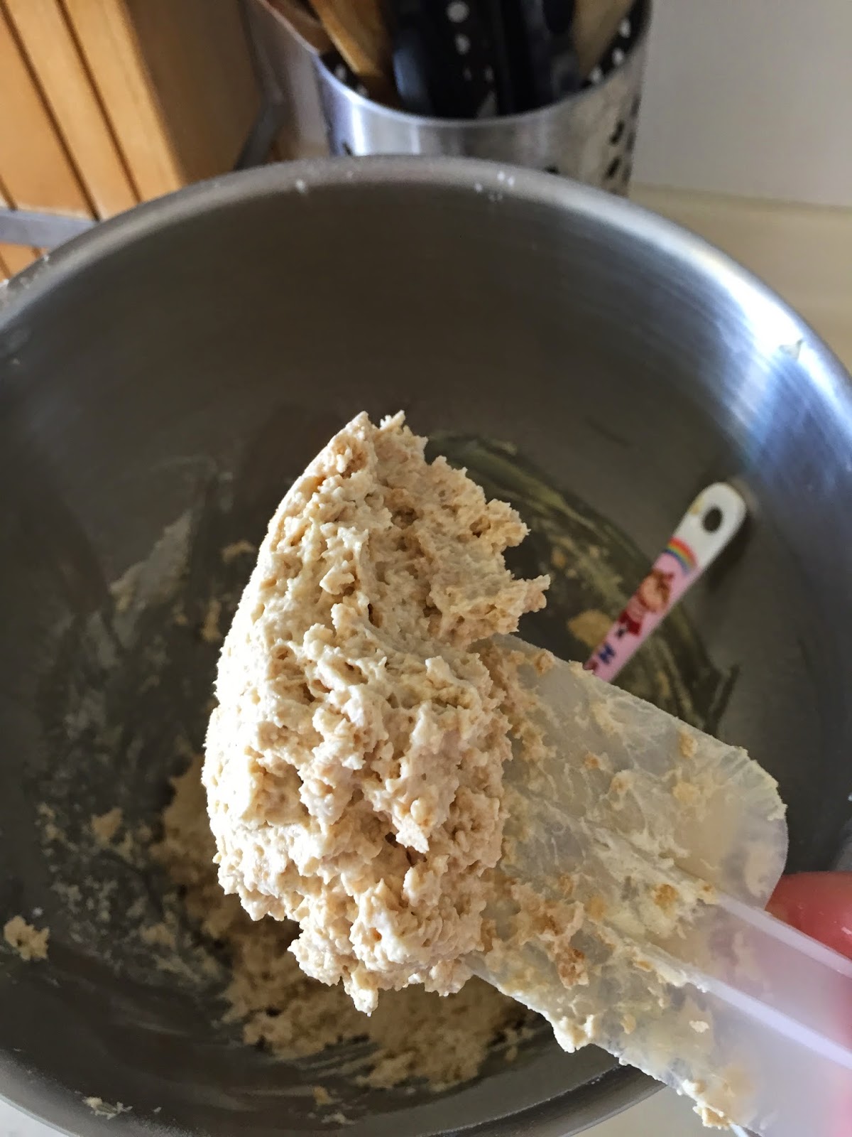 - Add in flour mixture and 100g of nestum cereal. Mix well until you get a dough.